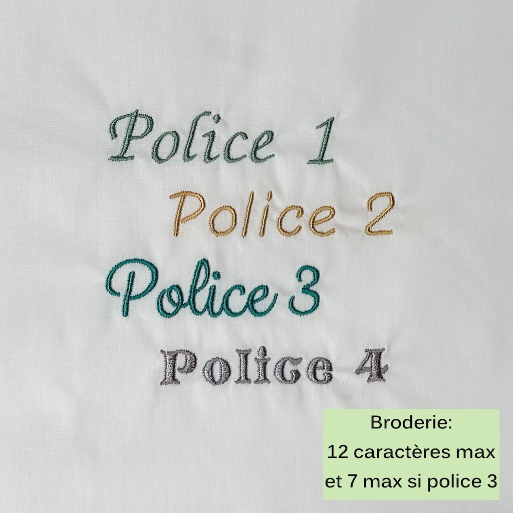 Les coloris des fils de broderie seront choisis par la créatrice, sauf précision de votre part.