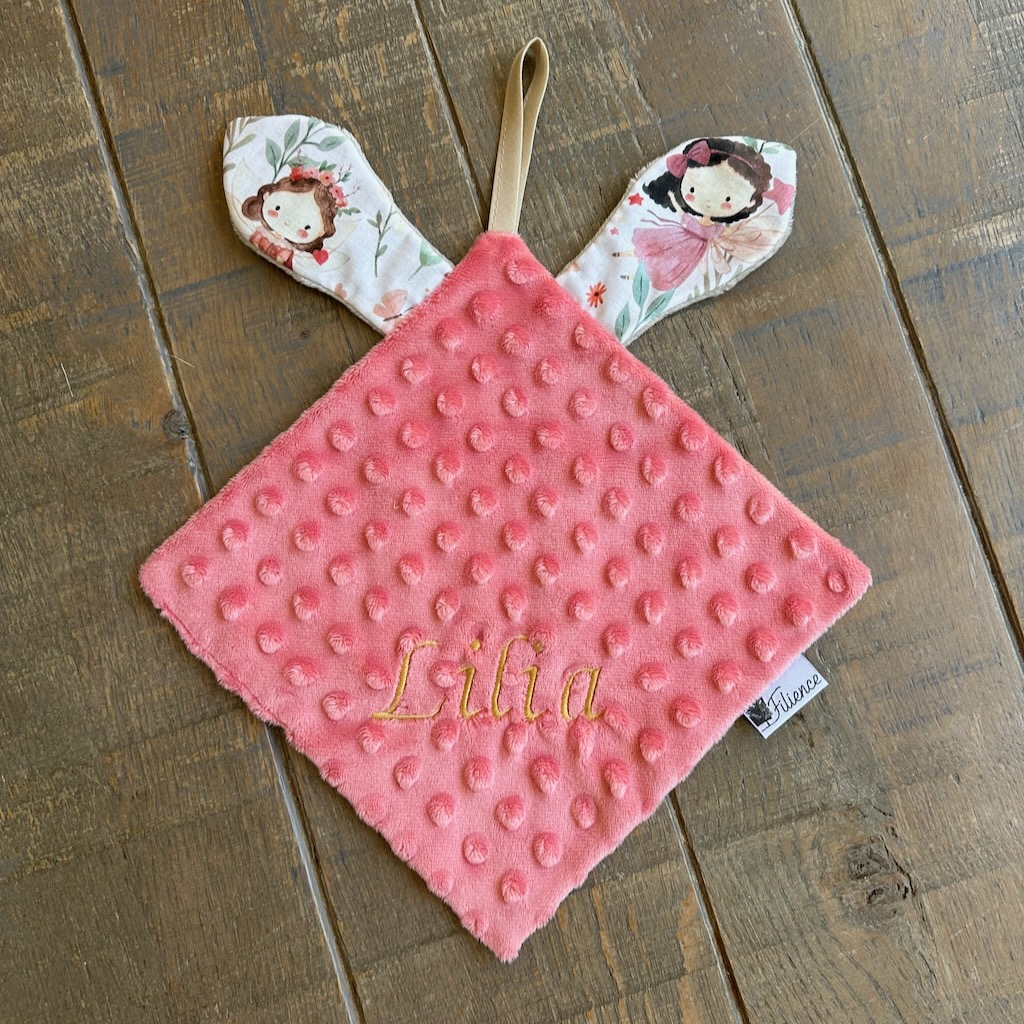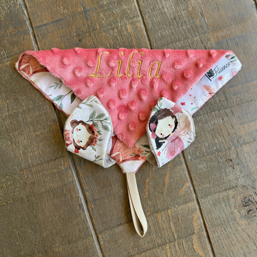 Doudou oreilles personnalisé MOTIFS Fées ou Dragons – Minky