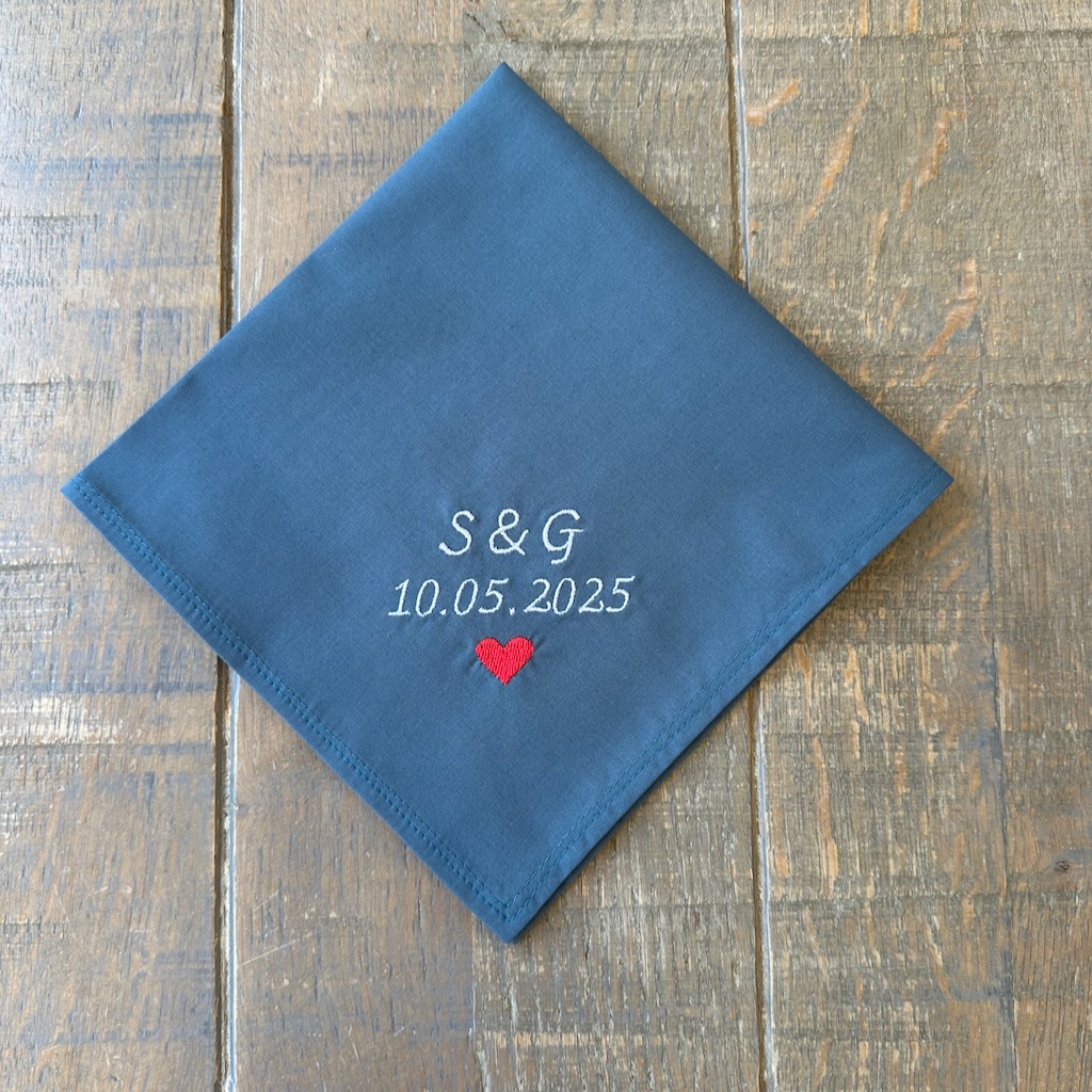 Mouchoir à broder selon vos souhaits sur un tissu qui respecte l’environnement