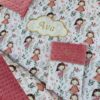 Protège carnet de santé personnalisé, doublé, avec fermeture élastique sur l’arrière. Duo de tissus au choix et matelassage.